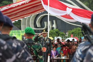 Komando Gabungan Wilayah Pertahanan (Kogabwilhan I) menggelar upacara Peringatan Hari Ulang Tahun Ke-77 TNI di Provinsi Kepri, bertempat di Lapan