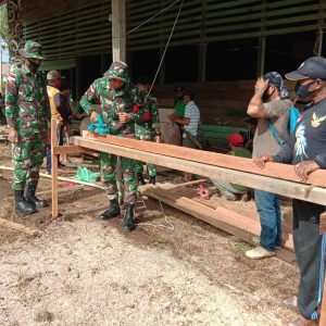 Membantu Kesulitan Rakyat Di Sekelilingnya Anggota Satgas Pamtas RI-MLY Yonif Raider 200/BN Bantu Pembuatan Peti Jenazah