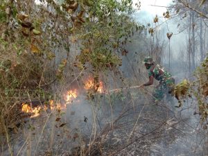 Prajurit Yonif 125/Simbisa bersama Petugas PLBN Sota dan Aparat Kepolisian Setempat Berjibaku Memadamkan Kebakaran Lahan