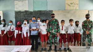 Dukung Pendidikan, Satgas Yonif 642 Bagikan Buku dan Alat Tulis Kepada Siswa Perbatasan RI-Malaysia