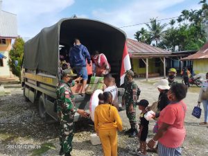 Mobil Truk Satgas 413 Antar Warga Perbatasan RI-PNG Ibadah di Pantai Hamadi