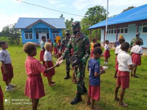 Satgas Pamtas RI-PNG Yonif 125/Simbisa Bagikan Masker Kepada Siswa-Siswi SD YPK Toray