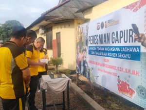 Setelah selesai kegiatan olah raga sepeda santai bersama pejabat utama polres Muba, Kapolres Muba Akbp Siswandi Sik SH MH Meresmikan pintu