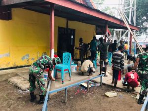 Bersama Warga, Satgas Pamtas Yonif 125/Simbisa Laksanakan Kerja Bakti Di Gereja