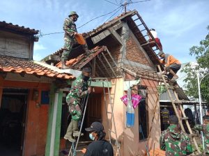 Prajurit Kodim 0716 Demak Bersama Warga Lakukan Perbaikan Rumah Rusak Pasca Bencana Angin Puting Beliung