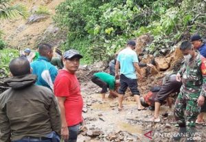 Bagian Jalan Penghubung Bangko dengan Kerinci Tertutup Longsoran Tanah