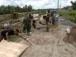 Satgas TMMD ke-119 Kodim 0401 Muba Gotong Royong Bersama Warga Bangun Jembatan Komposit