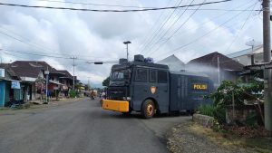 Polres Pagaralam Kembali Semprotkan ribuan liter Disinfektan Gunakan Water Canon